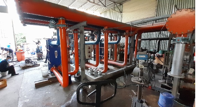 các thiết bị chính, gồm thiết bị Trao đổi nhiệt Alfa Laval, Bơm cấp, Hệ đường ống,